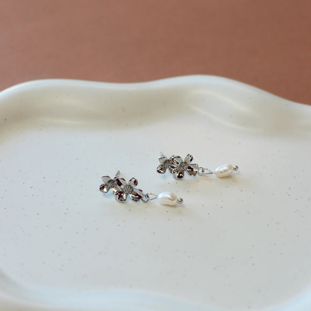 Quinn Floral Pearl Earrings - Silver