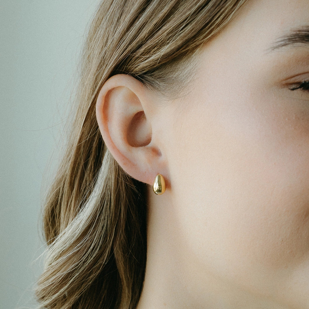 Chic gold teardrop earrings with a sleek, polished finish that catches the light beautifully. Their minimalist design adds a touch of modern elegance to any look.