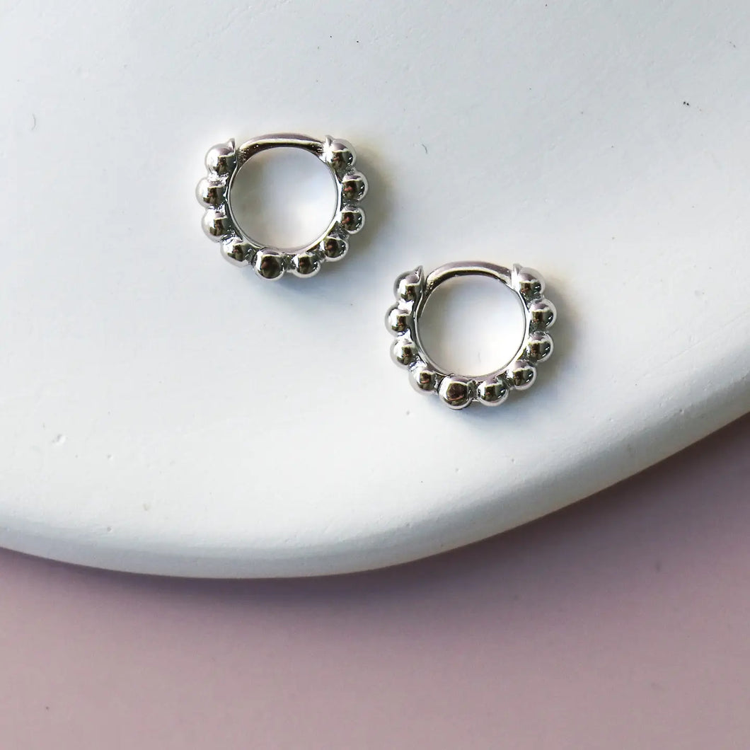 Small sleeper type earrings decorated with small beads. They are delicate and ideal for 2nd piercing holes.