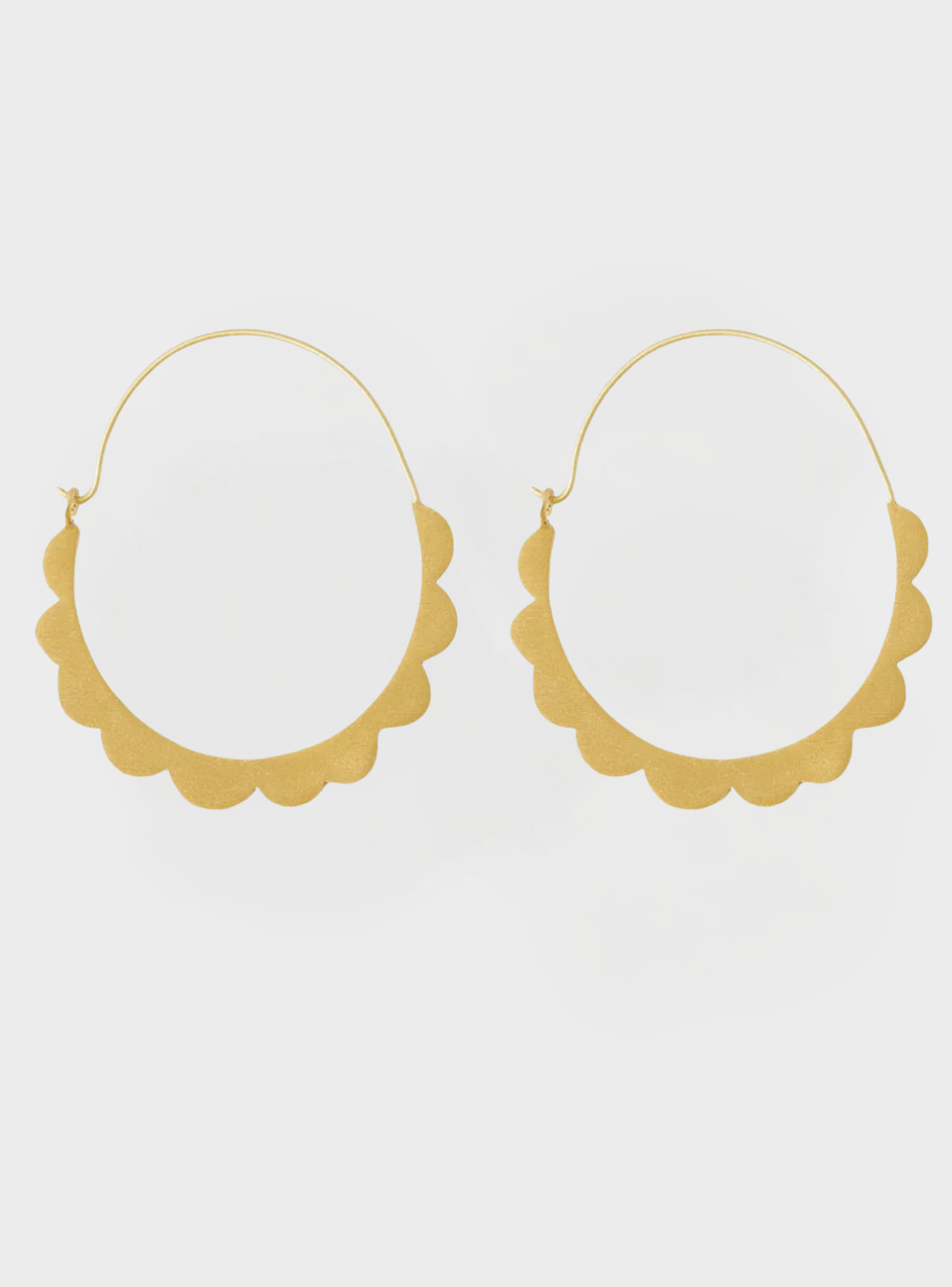 Elevate your style with the Stephanie Scallop Wrapped Hoop Earrings in Brass, a chic and sophisticated accessory. Crafted from 100% Brass, these hoop earrings feature a scalloped design that adds a touch of geometric intrigue to your look. Stephanie is the ideal choice for those who want to make a statement with a touch of brass elegance.