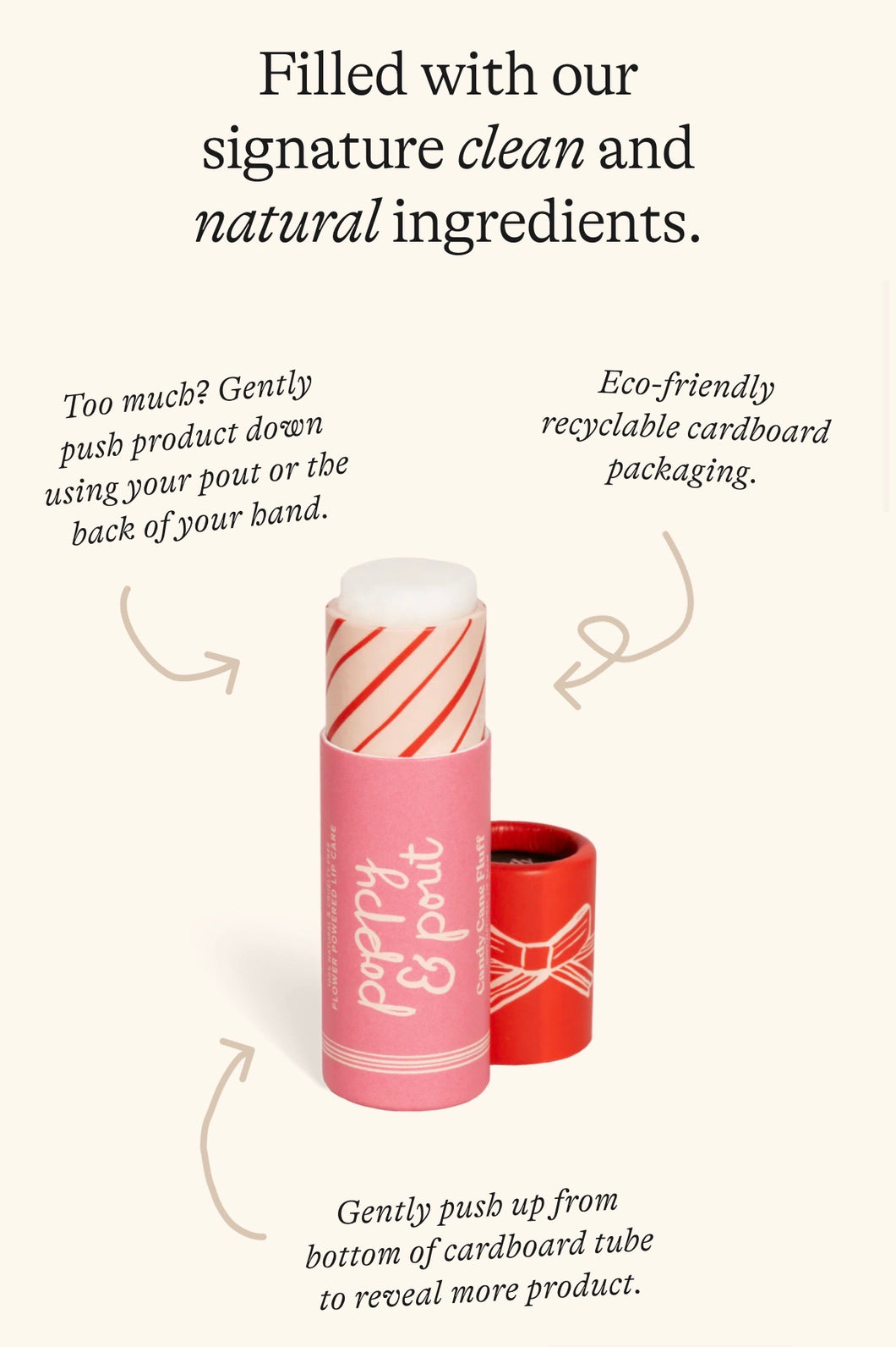 Poppy & Pout lip care products do not contain any artificial or synthetic fragrances. We use a clean combination of essential oils and natural flavor oils to create the delicious aroma you smell every time you use our products!