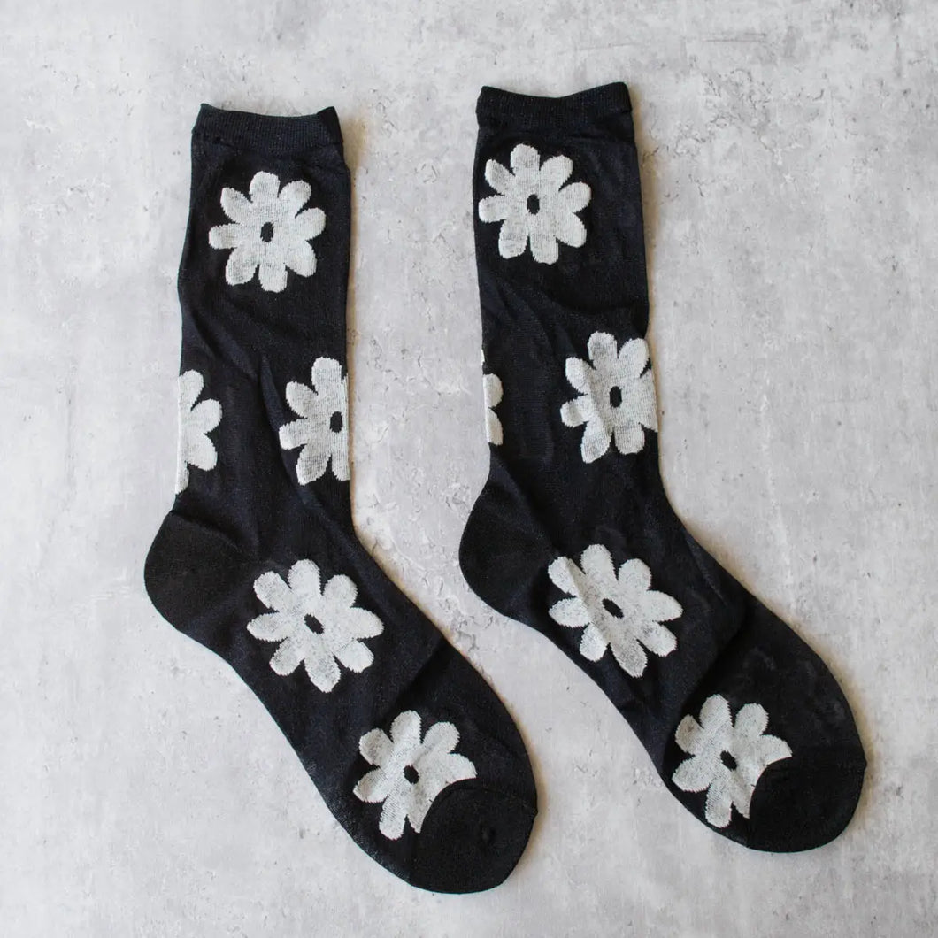 Vintage Glitter Flower Socks - Black